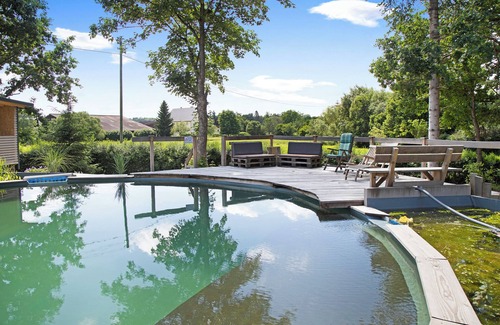 Entre el río Danubio y el lago de Constanza, el apartamento Donautal, de 100 m², está situado en la ciudad de Meßkirch e impresiona a los huéspedes por su decoración moderna y su bello entorno verde. El moderno apartamento consta de un amplio y soleado salón/comedor con un gran sofá cama para 2 personas, una cocina abierta bien equipada con lavavajillas, 2 dormitorios y 2 cuartos de baño (ambos con ducha y WC), por lo que puede alojar de 4 a 6 personas. Los servicios adicionales incluyen Wi-Fi, televisión, lavadora, secadora y secador de pelo. Una cama de bebé, una trona y libros y juguetes para niños, así como un parque infantil en la propiedad hacen de este alojamiento especialmente adecuado para los niños. Además, el apartamento cuenta con un balcón privado (45 m2), accesible desde todas las habitaciones, con un acogedor rincón de estar, así como una mesa de comedor y una parrilla. En el hermoso jardín compartido encontrará un estanque donde podrá refrescarse y relajarse al final del día. Desde la cocina se divisa el castillo de Werenwag, en Donautal, lo que le ofrece una primera impresión del Parque Natural del Alto Danubio.