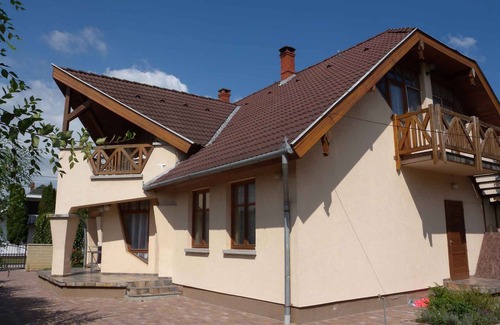 Apartamento vacacional en una calle tranquila pero cerca del centro Su alojamiento turísticoEl apartamento vacacional está rodeada por un cerrado terreno de jardín. El propietario no vive en la casa o en la propiedad. El terreno está rodeado de una valla. El apartamento solo es apto para familias. Para uso privado a su disposición: terraza, muebles de jardín y barbacoa. Su apartamento turístico1 planta, 4 habitaciones (de los cuales 3 dormitorios), 110 m², 6 personas. Entrada por una escalera exterior a la cocina-comedor. 3 Dormitorio respectivamente con 1 cama doble y acceso a la terraza. Salón con rincón para sentarse, televisión y acceso a la terraza (muebles de jardín). Cocina con zona comedor (6 plazas), cocina de gas (4 fuegos), horno, nevera (congelador), microonda, cafetera, tostadora, hervidor eléctrico de agua y acceso a la terraza. 2 Baño respectivamente con bañera con instalación de ducha, 1 lavabo, inodoro y ventana.Otras instalaciones: acceso de internet (WLAN) y trona. Recepción televisiva vía satélite. Animal domésticono se permite. UbicaciónBalatonlelle. El apartamento vacacional moderno se encuentra en una urbanización de casas vacacionales y en una tranquila y una soleada ubicación. El acceso se realiza por una calle secundaria. Aparcamiento en la propiedad (para 2 coches). Compras 200 m, restaurante 200 m, centro de la localidad 500 m. En el veranoBalaton 600 m en Balatonlelle. tenis, pescar, alquiler de barcos respectivamente 500 m en Balatonlelle. Condiciones y preciosEn el precio incluidoacceso de internet, estacionamiento, electricidad, gas, agua, limpieza final, ropa de cama, WLAN acceso de internet. Costes adicionales-Costes en el lugar/destino:/Obligatorio:póliza de turismo según la tarifa del lugar.Fianza:150 Euro