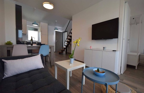 El moderno complejo de apartamentos con 6 apartamentos está situado en una zona tranquila, junto a rutas y senderos en bicicleta, en un pequeño pueblo turístico de Cizici en la isla de Krk. La famosa playa con lodo curativo, Soline, se encuentra a 800 m de distancia y la isla de Cueva Biserujka a unos 900 m. Esta casa de vacaciones es ideal para familias con niños. Hay dos apartamentos en la planta baja, cada uno con dos dormitorios, cocina con sala de estar y comedor, baño y terraza privada. En el segundo piso hay 4 apartamentos, cada uno con habitación doble, cocina con sala de estar y comedor, balcón, baño y habitación extra con cama doble y una cama individual en una galería. TV vía satélite, WiFi y aire acondicionado están a su disposición. Todos los huéspedes pueden utilizar una zona de barbacoa y comedor en el jardín. Plaza de aparcamiento en frente de la casa. No se admiten mascotas en esta propiedad de alquiler. Čižići es el destino correcto para sus vacaciones? Medna es el nombre de este objeto, ubicado en Čižići. Este objeto está a 450 m de distancia del aire del mar. Durante los días de verano, busque refrescos para usted y su familia en la playa que se encuentra a 800 m del objeto. La playa es: playa de gravilla. Para permanecer en la playa, asegúrese de traer toallas y protegerse del sol con un sombrero o sombrilla, y use una crema protectora. Medna tiene un estacionamiento seguro, que es otra ventaja de este alojamiento, y es de vital importancia si viaja en automóvil durante sus vacaciones. Durante sus vacaciones, a la mayoría de las personas les encanta preparar pescado o carne a la parrilla para la cena o el almuerzo. Y después de la cena disfrutar de la noche en una agradable compañía. El objeto "Medna" tiene Grill, así que si te gustan las barbacoas, definitivamente disfrutarás quedándote en este objeto. Cualquier pregunta adicional relacionada con la playa o el destino Čižići, consulte con su anfitrión porque aún conocen mejor la ubicación. Le deseamos una cordial bienvenida a nuestras instalaciones de Medna en el destino Čižići.