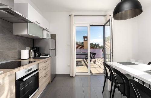 Cerca de este apartamento para no fumadores podrás disfrutar del submarinismo y del ciclismo, entre muchas otras cosas. Al disponer de un aparcamiento en las instalaciones, podrás olvidarte de tu vehículo y dar un paseo hasta Playa de Rabac y Puerto de ferries de Rabac.
