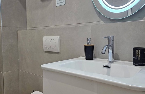 Este apartamento de 1 dormitorio y 1 baño está ubicado en Tirana, una ubicación ideal para explorar los alrededores. A los amantes de la naturaleza y el aire libre les encantará estar a 5min en coche de Lago artificial de Tirana y a 5min de Gran Parque de Tirana. Estarás a pocos pasos de Bazar Nuevo y a solo 8min de Plaza de Skanderbeg.