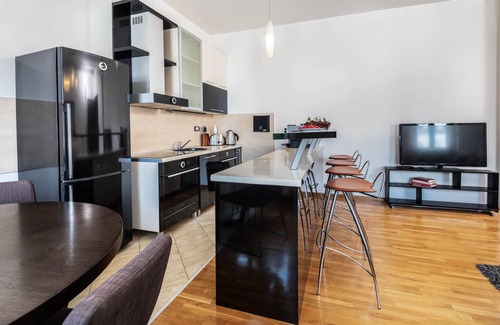 Todo este apartamento de 2 dormitorios y 1 baño con sala de estar, comedor y cocina recientemente renovados con muebles y decoración únicos. Disponible para alquileres a corto plazo con muebles de buena calidad, amplios y luminosos. Posición envidiable en la moderna y vibrante Plaza de la República, con cientos de tiendas, bares, restaurantes y acceso rápido y conveniente a todas las atracciones principales de Belgrado. Esta increíble ubicación central es una base excelente para cualquier visitante de Belgrado.