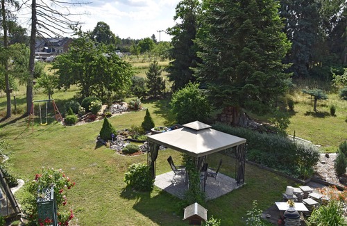 Nuestro acogedor pero espacioso apartamento de 120 metros cuadrados con dos habitaciones separadas se encuentra en el 1er. Planta superior de la casa bifamiliar. Ubicado en el centro del pueblo con vista a los prados, se puede disfrutar de la naturaleza y la tranquilidad. Te invitamos a utilizar nuestro jardín y área de barbacoa para un final exitoso y acogedor de la noche. También tenemos un lugar para sus bicicletas, motocicletas o automóviles.