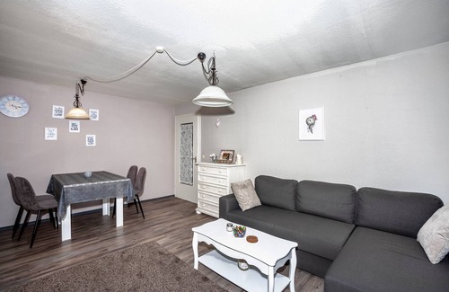 The holiday apartment Zwischen Bodensee und Donautal is located in Krauchenwies and is perfect for an unforgettable holiday with your loved ones. The 55 m² property consists of a living room with a sofa bed for 2 people, a kitchen, 1 bedroom and 1 bathroom as well as an additional toilet and can therefore accommodate 5 people. Additional amenities include high-speed Wi-Fi (suitable for video calls) as well as a smart TV with streaming services.