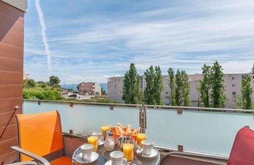 Apartments Nikolina area located in Split, one of the most beautiful cities on Dalmatian coast rich with history and culture. Property consists of four air-conditioned units each with furnished terrace and sea view. Free WiFi is provided throughout the property. Luggage storage is possible prior check in and after check out. Baby cot is available on request without additional charge. Please note ***Tourist tax of 2 euros per person per stay is not included in the price.*** This comfort two bedroom apartment can comfortably accommodate up to 6 persons. It features living room with seating area, flat-screen smart tv and air conditioning. Kitchen is equipped with stove, oven, water kettle, microwave, dishwasher and refrigerator, while bathroom comes with shower tub, spa bath and hair dryer. Washing machine and ironing facilities are at guests disposal. WiFi is free and available for guests. Lovely furnished terrace is also at guests disposal. Apartments Nikolina are located in the city of Split, the second biggest city in Croatia and the biggest one on the Croatian coast. The city is famous for its great history and cultural heritage, its tradition, gastronomy, beaches and mild Mediterranean climate. Due to the property's favorable location in a residential area of Split, everything you may need for a pleasant stay can be reached in a proximate distance. The nearest beach is 100 meters from the property. Grocery store, restaurant, post office, ATM can be found within 5 minutes of walk from the apartment. Nearest bus stop is 100 meters away. Split Airport is located 22 km away from the property, while ferry port and main bus station are 3,4 km away.