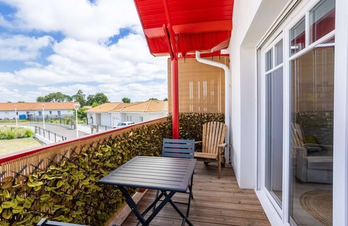 Este apartamento tan agradable en Biscarrosse te permitirá disfrutar de todo tipo de actividades. El alojamiento dispone de un aparcamiento en las instalaciones. Además, estarás a 9min en coche de Lago de Biscarrosse y a 10min en coche de Campo de golf Biscarrosse Golf.