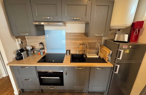 Este alojamiento de 2 dormitorios y 1 baño cuenta con una sala de estar, un comedor y escritorio. Disfruta del wifi y de la televisión. Prepara una comida casera en la cocina, equipada con placa de cocina, frigorífico y lavavajillas, además de cafetera y tetera, hervidor eléctrico y microondas. Y como hay acceso a una lavandería, no necesitarás llevarte mucho equipaje. Otras comodidades incluyen una tabla de planchar, calefacción y una mesa de comedor.
