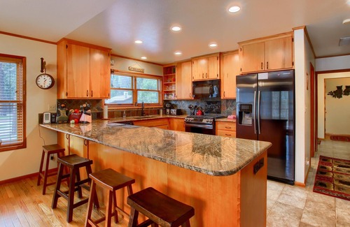 Tome el autobús gratuito al majestuoso Mariposa Grove of Giant Sequoias que está a 9,6 km de distancia. Por supuesto, no querrá perderse el pintoresco viaje de 45 minutos sobre la montaña hasta el espectacular Valle de Yosemite, o el majestuoso Glacier Point con vista al valle que se encuentra debajo. Durante el invierno, disfrute de la zona de esquí familiar de Badger Pass, o continúe hasta el valle de Yosemite para ver las impresionantes escenas de invierno y patinar en la pista de patinaje sobre hielo al aire libre. Luego, regrese al ambiente de Apple Tree Bear House para una tarde relajante en la bañera de hidromasaje o disfrute de una noche de juegos y rompecabezas. Lea la historia lírica de donde se deriva el nombre de la casa, y llévese el libro a casa como recuerdo si lo desea, complementos de los propietarios