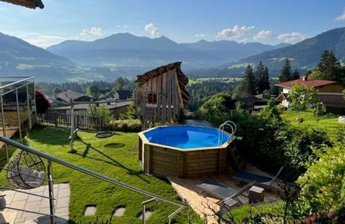 La casa consta de dos plantas. En la planta superior hay una gran sala de estar, un acogedor comedor con conexión a la terraza y al jardín, una cocina con lavavajillas, vitrocerámica, nevera, cafetera, tostadora y microondas. Además, baño, aseo y 2 habitaciones dobles. 1 dormitorio con acceso al balcón / terraza. En el piso inferior tiene una habitación de 4 camas, una habitación de 2 camas y una habitación de 3 camas. Todas las habitaciones tienen vistas a las montañas de los alrededores. Además, un amplio baño con inodoro y una sala de esquí con lavadora y pasaje a la cochera. La casa tiene una gran terraza cubierta con asientos y un gran jardín con casa de juegos para niños, así como una cochera para 3 autos. Disfrute de su tiempo libre en nuestra sauna panorámica de pinos con vista a los Alpes de Kitzbühel y una acogedora sala de relajación que no deja nada que desear.