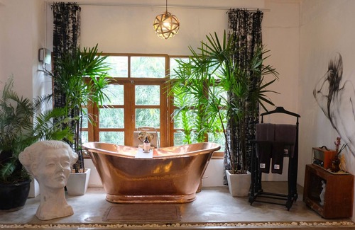 Get creative at this inspiring, art-filled space in the city's buzzing hip Thonglor district. From Andy Warhol, Vincent Van Gogh, Frida Kahlo to personal pencil drawing, this home is bursting with artistic charm. Bright tones blend with statement bathtubs and balconies. Most of furniture and decoration items are handmade and personal import collectibles.