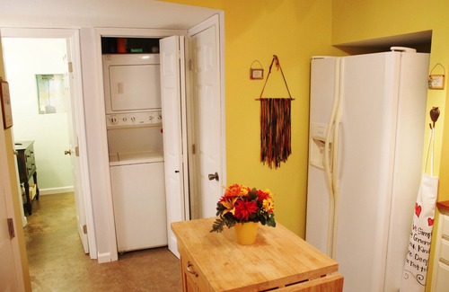 Este apartamento completo fue recientemente construido y diseñado para aquellos con un gusto moderno. Con pisos de concreto teñido, lavadora y secadora apiladas (con detergente) y una decoración artística, este acogedor apartamento te hará sentir como en casa. A 15 minutos del centro. La cocina está equipada con todo lo necesario para cocinar. Este apartamento es un apartamento totalmente privado con entrada independiente, que utiliza todo el piso inferior de una casa de 3 pisos. ¡Háganos saber un poco sobre usted y quién viajará con usted! ¡Disfrutar!