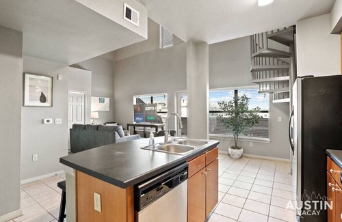 Balcony Skyline View + Spiral Staircase + Near UT! Se encuentra en West Campus. Balcony Skyline View + Spiral Staircase + Near UT! ofrece alojamiento, con Aire acondicionado, TV, Silla de ruedas accesible, Entre otras comodidades. Estas características Apartamento Aire acondicionado, TV, Silla de ruedas accesible, Para que su estadía sea cómoda.
