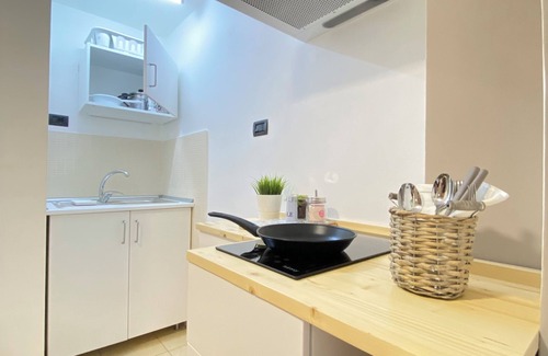 Cozy and welcoming studio apartment in a central and well-served area. It features a spacious and comfortable double bedroom. The functional and practical kitchenette is equipped with a microwave and a coffee machine, along with accessories to ensure a pleasant stay. The bathroom includes a shower.