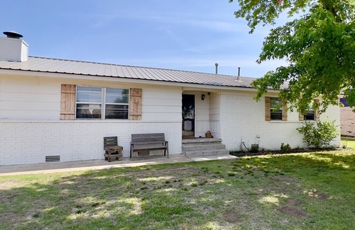 Forget your worries in this spacious and serene space in Laverne, OK. This home is perfect for friends and family and is located steps away from the walking trail and just a couple blocks from the golf course. It's on a corner so plenty of parking is available. There is three bedrooms available, one king size bed, two full size beds, and a futon that can also be used to sleep.