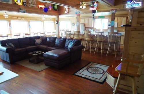 La decoración general de la casa es una cabaña no tan rústico con todas las mejoras de hoy en día. Las vistas panorámicas, grandes áreas de entretenimiento, y la capacidad de asiento más de 18 personas para la cena en el interior, hacen de esta una propiedad única.