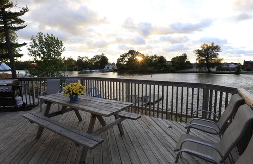 Este concepto abierto casa le da la bienvenida con un interior de pino machihembrado caliente. La cocina cocina ofrece una alta funcionalidad, mientras que entretener la familia e invitados e incluye una mesa de comedor con capacidad para 6 personas cómodamente. Esta casa puede dormir un máximo de 11 adultos con 3 dormitorios, uno con dos dobles y los otros dos dormitorios tienen reinas. Usted encontrará que hay mucho espacio para que usted hacia fuera. Y por si acaso, para aquellas personas durante la noche, siempre se puede caer abajo las dos futones en el salón de la ropa de cama adicional. La casa tiene aire acondicionado, y cuenta con un tamaño cómodo Jack y Jill baño. Usted será capaz de saludar a los amigos y disfrutar de actividades al aire libre en su propia terraza con mesa y sillas. Lo suficientemente grande como para albergar una manada de sus colegas más cercanos de la barbacoa será muy útil para mantenerlos bien alimentados y entretenidos. Entonces, junto a las aguas borde de un pozo de fuego para mantener la noche ir. También puede iniciar un día lleno de diversión de la conveniencia del muelle donde se puede aparcar el vehículo acuático