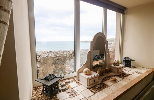 Beacon Cottage ofrece espectaculares vistas de la costa desde una encantadora posición en la Bahía de Cemaes en la Isla de Anglesey. Este alojamiento al revés alberga cuatro dormitorios; un doble de la planta baja con dosel de 5 ', un doble de la planta baja y dos gemelos, uno en cada piso. La casa de campo también tiene una sala de estar en el primer piso con una estufa de gas, y también hay una cocina en el primer piso, un lavadero, una sala de lectura cómoda y un baño con ducha en la planta baja. En el exterior hay un jardín trasero cerrado y cerrado con asientos y estacionamiento fuera de la carretera para dos autos. Beacon Cottage es de diseño único, un refugio cómodo en un área de belleza.