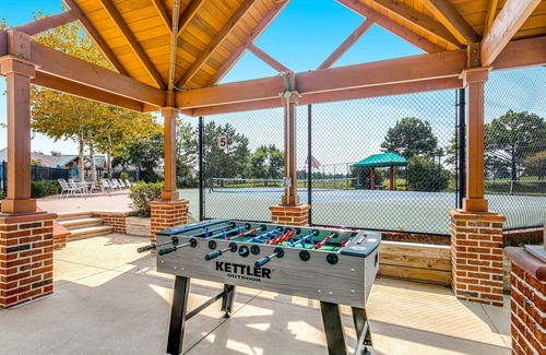 En esta casa de vacaciones de 142 m² podrás relajarte en la piscina compartida o tomarte algo en el porche o patio. Además, también podrás disfrutar de un gimnasio. En cuanto al interior, puedes disfrutar de la conexión a Internet, de la televisión por satélite o cable y del reproductor de DVD.