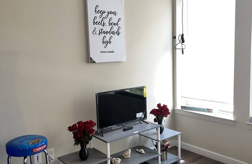 Al instalarte en este alojamiento de 1 dormitorio y 1 baño, encontrarás escritorio y servicio local de entrega de comida. Conéctate al wifi gratis, o relájate frente a un Smart TV. La cocina está equipada con horno, placa de cocina y frigorífico, además de cafetera y tetera, máquina de hielo y microondas. Y hay una secadora, de modo que necesitarás poco equipaje.