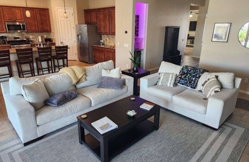 Esta casa de vacaciones tan agradable en Peoria lo pone todo a tu alcance. Si subes al coche, estarás a 13min en coche de Peoria Sports Complex y a 17min en coche de Happy Valley Towne Center (centro comercial). Además, el alojamiento dispone de garaje donde podrás dejar tu vehículo.