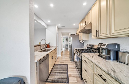 Este alojamiento de 4 dormitorios y 2 baños cuenta con una zona para barbacoas y aire acondicionado. El cuarto de baño incluye un secador de pelo, toallas y papel higiénico. La cocina está equipada con horno, placa de cocina y frigorífico, además de cafetera y tetera, máquina de hielo y microondas. Y gracias a la lavadora y la secadora, podrás viajar con poco equipaje.