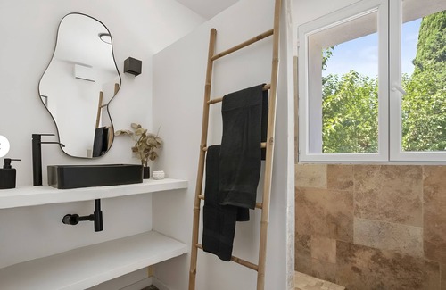 Ubicada en una granja provenzal en 3 hectáreas de paisaje natural, la Love Suite, con su bañera de hidromasaje privada y balcón con vistas a la piscina, ofrece una escapada íntima y romántica en un entorno cálido e idílico. Situado a menos de 30 minutos, los huéspedes pueden disfrutar de una gran variedad de actividades: excursiones por el parque natural, paddleboard, acceso al lago y al mar, visitas a castillos, catas de vino, cascadas naturales y un parque cercano a sólo 10 minutos. ¡Un retiro ideal para relajarse y recargar las pilas!