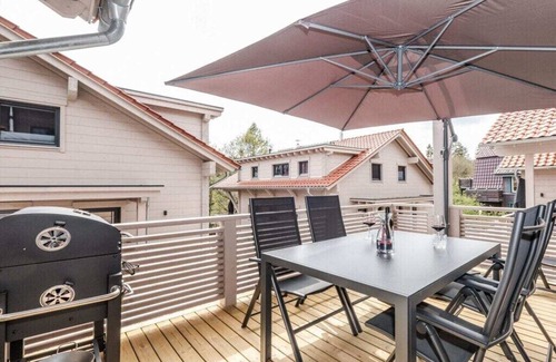 Layout: Ground floor: (hallway(Mirror, Wardrobe Coatrack, heating, insect screens), Kitchen(Egg Cooker, Mixer, Tea Towels, dining table, stove, hob, electric kettle, toaster, coffee machine, oven, microwave, dishwasher, fridge, freezer, heating, insect screens, Food processor), Living/diningroom(Sofa, TV, dining table, fireplace, stove, heating, insect screens), bathroom(Mirror, toilet, shower, washbasin, heating, insect screens), relaxation area(sauna), storage(children's bed, high chair)) Attic: (bedroom(Bed Linen, Wardrobe, double king size bed, TV, heating, insect screens), bedroom(Bed Linen, Wardrobe, double king size bed, TV, heating, insect screens), Gallery bedroom(insect screens), bathroom(Mirror, toilet, shower, washbasin, heating, insect screens)) Fire Alarm, Hot Water, Internet Access DSL, Safe, Vacuum Cleaner, Internet access, Internet access, First Aid, tumble dryer, washing machine, terrace(Sun Umbrella, grill, garden furniture), parking, stair gate, ironing board, iron, drying cabinet, Charging post for electric cars