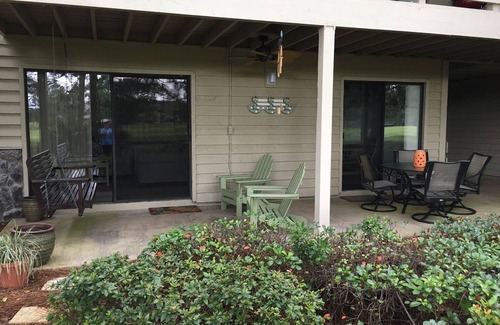 Esta villa de golf en la planta baja ubicada en la calle 13 cuenta con habitaciones, cocina y salas de estar recientemente renovadas. Todos los electrodomésticos nuevos de acero inoxidable en la cocina, placa para salpicaduras y encimeras de azulejos nuevos, gabinetes recién pintados e iluminación empotrada. El dormitorio principal tiene muebles King nuevos, así como pintura nueva, alfombra nueva y ventilador de techo nuevo. El dormitorio de invitados tiene dos camas individuales nuevas, alfombra nueva, pintura nueva y ventilador de techo nuevo. La sala de estar también cuenta con un sofá cama plegable tamaño Queen, pisos de baldosas nuevas, pintura nueva y todos los muebles nuevos. Nueva mesa de comedor e iluminación. Esta es una unidad para NO FUMADORES. Lo sentimos, actualmente no se permiten mascotas. Lavadora y secadora se encuentran a las afueras de la puerta en el Breezeway. A solo unos pasos de la piscina y las canchas de tenis gemelas y una corta caminata (4/10 de milla) al acceso a la playa adyacente al restaurante Whale's Tail. El Resort cuenta con más de 2,000 pies de playa de servicio completo, deportes acuáticos y muchas otras comodidades de playa. Un campo de golf de 18 hoyos, numerosas canchas de tenis y una cancha de baloncesto se encuentran entre las comodidades del complejo. Ubicado entre Destin y 30A, hay muchas opciones excelentes para comer cerca, así como tiendas y otras posibilidades de entretenimiento. Reserve su estancia tranquila en nuestro Breakwater Bungalow hoy.