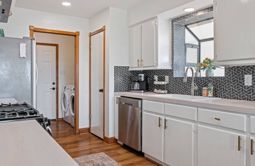 Este alojamiento de 4 dormitorios y 3 baños cuenta con una sala de estar, aire acondicionado y escritorio. El cuarto de baño incluye un secador de pelo, toallas y papel higiénico. La cocina está equipada con horno, placa de cocina y frigorífico, además de cafetera y tetera, microondas y utensilios de cocina. Y no tendrás que llevarte ropa de más, porque podrás aprovechar la lavadora y la secadora.