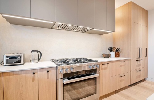 Este alojamiento de 4 dormitorios y 5 baños cuenta con un comedor, chimenea, aire acondicionado y dispensador de agua. La cocina está equipada con horno, placa de cocina y frigorífico, además de cafetera y tetera, máquina de hielo y microondas. Y como podrás aprovechar la lavadora y la secadora, no te hará falta llevar mucho equipaje.