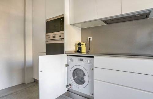 Las habitaciones de Blueground | Carcavelos, turnkey home + kitchen disponen de aire acondicionado, secador de pelo y tabla de planchar con plancha. Las habitaciones disponen de balcón. La cocina está dotada de frigorífico, placa de cocina, microondas y utensilios de cocina. Se ofrece servicio de limpieza a petición.