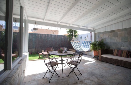 la casa es amplia, tiene un gran salòn y un comedor acristalado que ves el jardín . En el porche tienes una mesa con sillas, un sillón de ratan y una hamaca, ideal para relajarse. El jardín con plantas tropicales y una pequeña 3x2 m piscina para refrescarse, cuenta con 2 tumbonas comodisimas y 1 sillas/hamaca. La cocina es independiente y perfectamente equipada. Se encuentra en una urbanización a 5 km de Corralejo y 6 km de Lajares, en una zona de volcanes a la que tienes acceso directo para senderos de treking. La urbanizacion tiene un supermercado, 1 bar, 1 pizzería, parada de bus cada hora y de taxi. Hay servicio de homedelivery de muchos restaurantes de Corralejo.