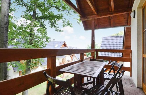 Paz, relajación y actividad le esperan en esta agradable casa de vacaciones cerca de Karpacz. Llegue aquí y siéntase como en casa y disfrute del tiempo juntos jugando o viendo películas. Póngase cómodo en el sillón de masaje, encienda una chimenea o disfrute de una bebida fresca en el balcón.