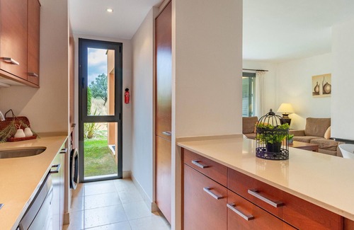 En este alojamiento se respira tranquilidad: ¡relájate con toda la familia!.Preciosa planta baja situada en el club de golf Bonmont Terres Noves. Urbanización de Mont-Roig Del Camp/ Miami Playa. Consta de 2 dormitorios dobles. Cocina individual completamente equipada. Baño con plato de ducha. Salón comedor con salida a gran jardín privado con un bonito porche para disfrutar en compañia. Dispone de Wifi, Aire acondicionado, Plaza de parking exterior y piscina comunitaria. Reserva tus vacaciones
