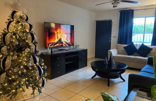 Amplio apartamento totalmente equipado para una estancia placentera, localizado en excelente area, a 1 calle de una farmacia (abierto las 24hrs), Walmart & Oxxo. Muy cerca del puente internacional I (Eagle Pass TX). Macro plaza, restaurantes y HEB. Estacionamiento incluido, con area de fumar en el patio. Aire central en toda la unidad y televisiones en cada recamara.