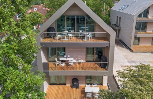 La primera fase de construcción ya se ha completado y hasta ahora ofrece 6 apartamentos de vacaciones en dos edificios con galerías cerradas, donde se puede sentir como en casa incluso en días de lluvia si el viento sopla en la dirección correcta.