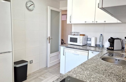 Situado en el cuarto piso de un edificio con ascensor, este apartamento reformado en 2019 cuenta con un diseño amplio y una abundancia de luz natural. Dispone de tres habitaciones y dos cuartos de baño completos, ambos con ducha. El luminoso salón comedor está equipado con una Smart TV, y rincón de oficina con silla ergonómica, proporcionando un espacio perfecto para trabajar, o relajarse y disfrutar de momentos de entretenimiento.