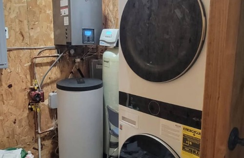 Consider this cabin your home away from home while you visit Mobridge. Relax with the whole family or traveling buddies in this newly built in 2025, 896 sq. ft. vacation rental. Located just outside Mobridge city limits with plenty of parking for boats and vehicles. Two bedrooms with room for 7 people plus a full kitchen, comfy furniture in the living room area, and double sinks in the bathroom across from the full size shower. A split a/c unit keeps you cool, full size fridge to store your ice and food plus a full size washer and dryer. There is also a grill availale for your grilling needs. Although pets are not allowed in the cabin, there is a garage nearby where they can be kenneld inside if needed.
