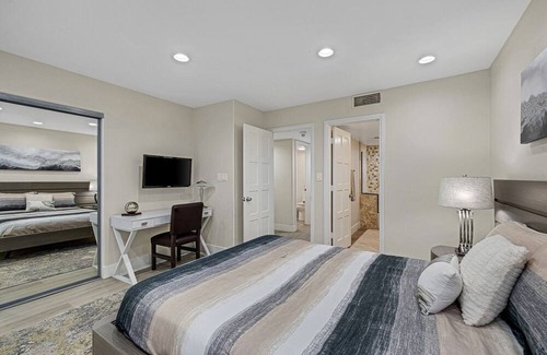 Este alojamiento de 3 dormitorios y 4 baños cuenta con chimenea y aire acondicionado. También puedes utilizar la bañera de hidromasaje, además de otras comodidades como toallas, champú y jabón. La cocina está equipada con horno, placa de cocina y frigorífico, además de cafetera y tetera, hervidor eléctrico y máquina de hielo. Y como podrás aprovechar la lavadora y la secadora, no te hará falta llevar mucho equipaje.