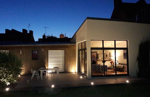 Casa de arquitecto (110 m²) contemporánea en una sola planta, reciente y muy luminosa con grandes ventanales, con una ubicación ideal en el centro de la ciudad, cerca del puerto (250 m) y una gran playa de arena blanca (600 m) ).