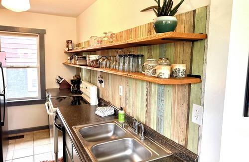 Bungalow en la ladera con vistas: ¡a 3 km del centro de Asheville! Se encuentra en Woodfin. Bungalow en la ladera con vistas: ¡a 3 km del centro de Asheville! ofrece alojamiento, con Chimenea/Calefacción, Cocina, Aire acondicionado, Entre otras comodidades. Estas características Casa Chimenea/Calefacción, Cocina, Aire acondicionado, Para que su estadía sea cómoda.