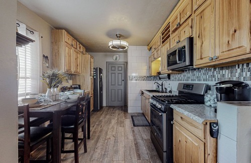 Esta encantadora casa espaciosa de un dormitorio y dos pisos ofrece una cocina completa y un baño con muchas comodidades. La cocina tiene un refrigerador grande, estufa, microondas y Keurig. También tenemos wifi de alta velocidad y televisión por cable Xfinity. Se encuentra en el centro de Albuquerque y se puede llegar a la mayor parte de la ciudad en diez minutos en vehículo. Comunidad tranquila a poca distancia de algunos restaurantes.