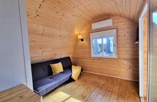 Un acogedor bungalow que admite mascotas, perfecto para parejas o familias pequeñas. Esta casa vacacional tiene capacidad para cuatro personas y cuenta con una habitación doble, un sofá cama individual y una cama supletoria en el comedor. Ubicado en un tranquilo camping, el espacio cuenta con aire acondicionado, televisión y una terraza privada con muebles de jardín para relajarse al aire libre. Se admiten mascotas por una pequeña tarifa por noche y hay aparcamiento disponible en la misma parcela. Los huéspedes pueden solicitar servicios adicionales como cunas, tronas o toallas de piscina con un suplemento. A tan solo 100 metros de la playa de Riells, el bungalow ofrece una ubicación excelente para disfrutar del mar. Está rodeado de tiendas de recuerdos, bares locales y una variedad de restaurantes, lo que facilita disfrutar de la vibrante cultura local. Ubicado dentro del Camping Lacus, la zona incluye un lago natural donde los huéspedes pueden pasear, pescar o relajarse en la naturaleza. Se ofrecen actividades para familias, lo que lo convierte en un destino ideal tanto para relajarse como para disfrutar del tiempo libre. La cocina americana está equipada con vitrocerámica, nevera, tostadora, hervidor de agua, cafetera y microondas, ideal para preparar comidas sencillas. Un baño privado con ducha y secador de pelo añade comodidad, mientras que la limpieza y la ropa de cama están incluidas en el precio de la limpieza final. Se pueden alquilar toallas y otros artículos adicionales, y hay un tendedero disponible para mayor comodidad durante estancias largas. [Nota: La piscina comunitaria está disponible exclusivamente durante julio y agosto].