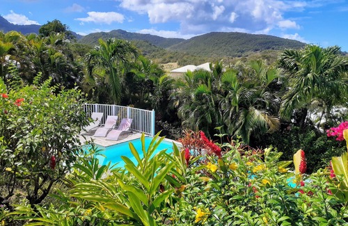 (Texto traducido automáticamente) entre Santa Rosa y Deshaies, 3 cabañas F2 estilo criollo, amueblado con todas las comodidades (aire acondicionado), en una parcela de 1.000 m2 vallada con piscina y jardín tropical. Ubicado frente a la playa de Cluny (300 m), vistas panorámicas al mar de caribe, islas, montañas y campos de caña sucre.Il dos tarifas para cada temporada, uno para 1/2 personas y otra para 3 / 4 personas