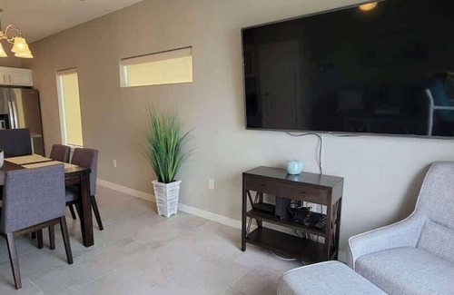 Este alojamiento de 2 dormitorios y 2.5 baños cuenta con un comedor y aire acondicionado. Conéctate al wifi gratis, o relájate frente a televisión. El cuarto de baño incluye un secador de pelo y toallas. La cocina está equipada con horno, placa de cocina y frigorífico, además de cafetera y tetera, máquina de hielo y microondas. Y como hay una secadora, no necesitarás llevarte mucho equipaje. Otras comodidades incluyen ropa de cama, una tabla de planchar y calefacción.