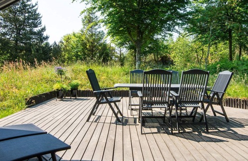 Casa de vacaciones ubicada en Lodbjerg Hede, cerca de la localidad costera de Søndervig. Desde el salón se accede a una terraza parcialmente cubierta y con vistas a la naturaleza con una rica fauna. Aquí podrá disfrutar tanto de las horas de sol durante el día como de una cena bien preparada en las cálidas noches de verano. La luminosa sala de estar está equipada con una estufa de leña, que en los días fríos puede proporcionar calidez y comodidad. Hay Apple TV en la casa. No se alquila a grupos de jóvenes.