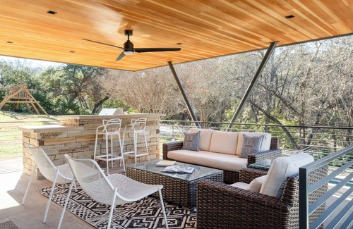 El diseño y la artesanía atemporales definen esta experiencia moderna de Westlake. Diseñado por el renombrado arquitecto Michael Hsu, incluye piscina, spa, cancha deportiva, trampolín, pozo de fuego y configuración completa de vida y cocina al aire libre. Esta casa tiene 5 dormitorios, 4 baños y tiene capacidad para 15 personas. La casa está ubicada en el área muy solicitada de Westlake Hills, a 10 minutos del centro de la ciudad. La propiedad se encuentra en un lote de 1 acre que es privado, aislado y tranquilo. ¡Increíble plano de planta abierto para entretener, trabajar en equipo, relajarse y simplemente divertirse con su grupo! Le encantará la experiencia que le brindará esta casa.