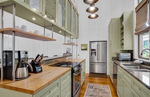 Relájese mientras se sienta en el relajante porche trasero con vista a un área natural con un camino hacia las canchas de tenis y Seaside. Disfrute de la gran cocina con electrodomésticos de acero inoxidable y una barra de granito con capacidad para cinco personas o cene en familia en el comedor con capacidad para seis personas o coma en uno de los muchos restaurantes locales o haga una parrilla en la parrilla de carbón. Estás cerca tanto de Watercolour como de Seaside's Town Centers.