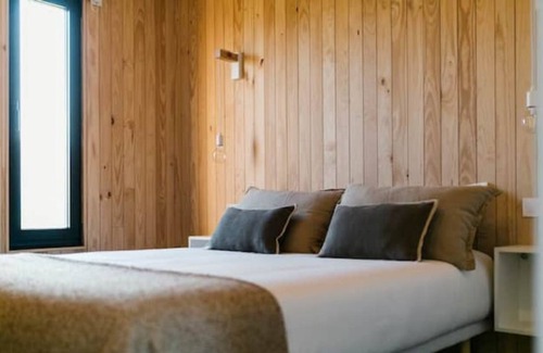 Estas cabañas que se enmarcan dentro de un turismo sostenible y ecológico (cuentan con equipos de bajo consumo gracias al empleo de la Aerotermia, además de disponer de placas fotovoltaicas con el fin de que la demanda energética externa sea la mínima, la cual además es de procedencia 100% renovable), construidas en madera de pino ecológico como material principal, dispone de 2 alojamientos independientes con todo lo necesario para pasar unos días en pleno contacto con la naturaleza. En los alojamientos encontramos todo lo necesario para dar el confort de sus usuarios, con 1 cómodo dormitorio doble con cama de 150 cm, baño con ducha de hidromasaje, cocina equipada, zona de salón con sofá cama y comedor, aire acondicionado, calefacción, TV, wifi, libros y juegos. En el exterior terraza con mobiliario de jardín y bonitas vistas. Y todo ello con un sencillo diseño y un interiorismo de inspiración nórdica.