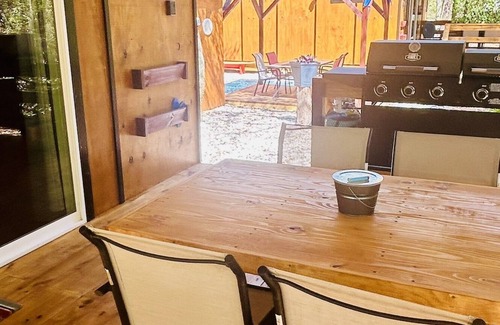 En esta cabaña para no fumadores tendrás un parque acuático y un área para parrillas a tu disposición.